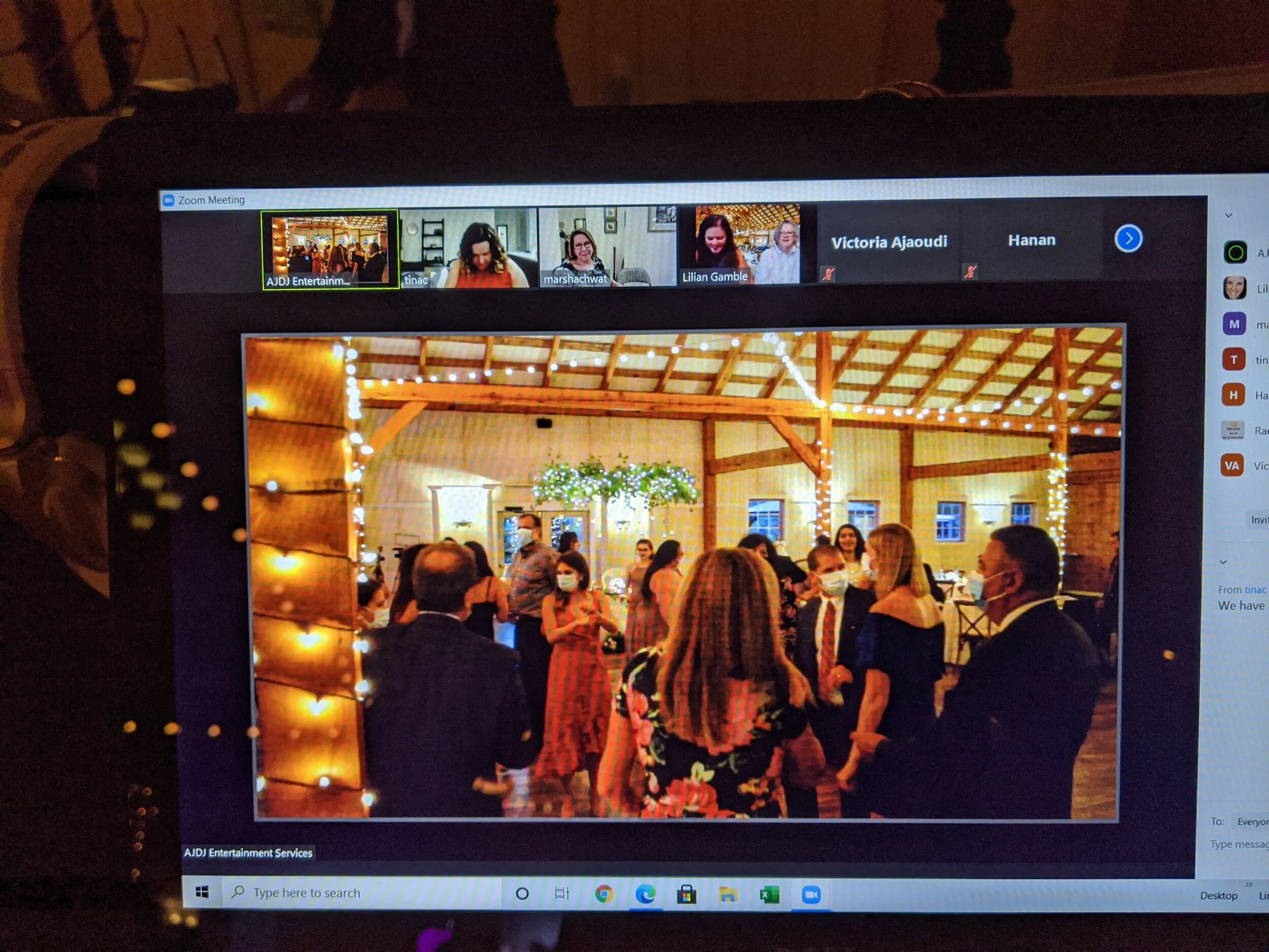 Remote guests were dancing in their homes! Some of them dressed up for the wedding from home!